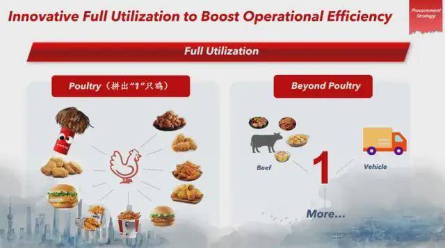 正在供应链端,“全物操纵” 的运营起头正在内部奉行。依托肯德基、必胜客等多品牌的复杂需求,百胜中国可以或许对一只鸡进行 “全局规划”:将整鸡的分歧部位取规格,连系品牌的需求以及研发,婚配到最合适的产物线中。鸡腿、鸡翅用于肯德基的典范产物;其他部位则通过研发和品牌协同为具有吸引力的新品,鸡胸肉被开辟为抢手的藤椒鸡排堡、疯狂木曜日的热辣喷鼻骨鸡源于翅根的立异朋分,必胜客的川喷鼻傲椒脆翅尖则是鸡翅的完全操纵,为消费者供给了新的口胃。